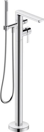Duravit D-Neo Freestanding Bath Mixer with hand shower, holder and hose.