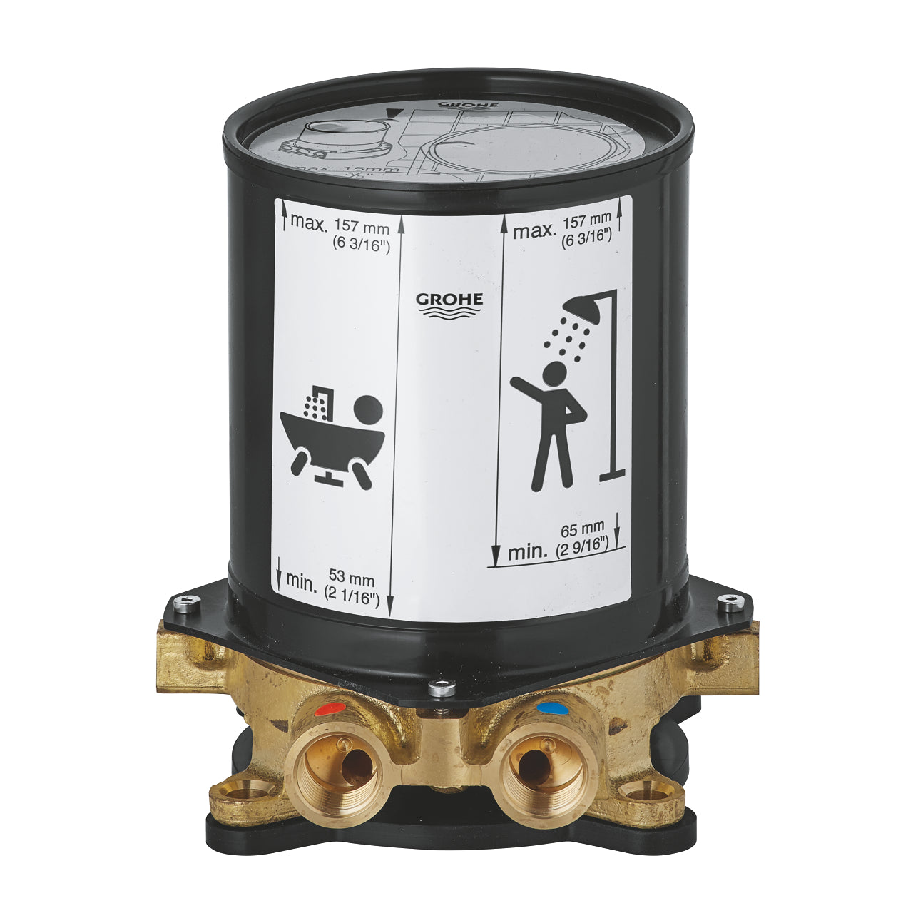 Essential rough-in body for floor-mounted bath mixers and shower mixers. Finishing trim set sold separately.