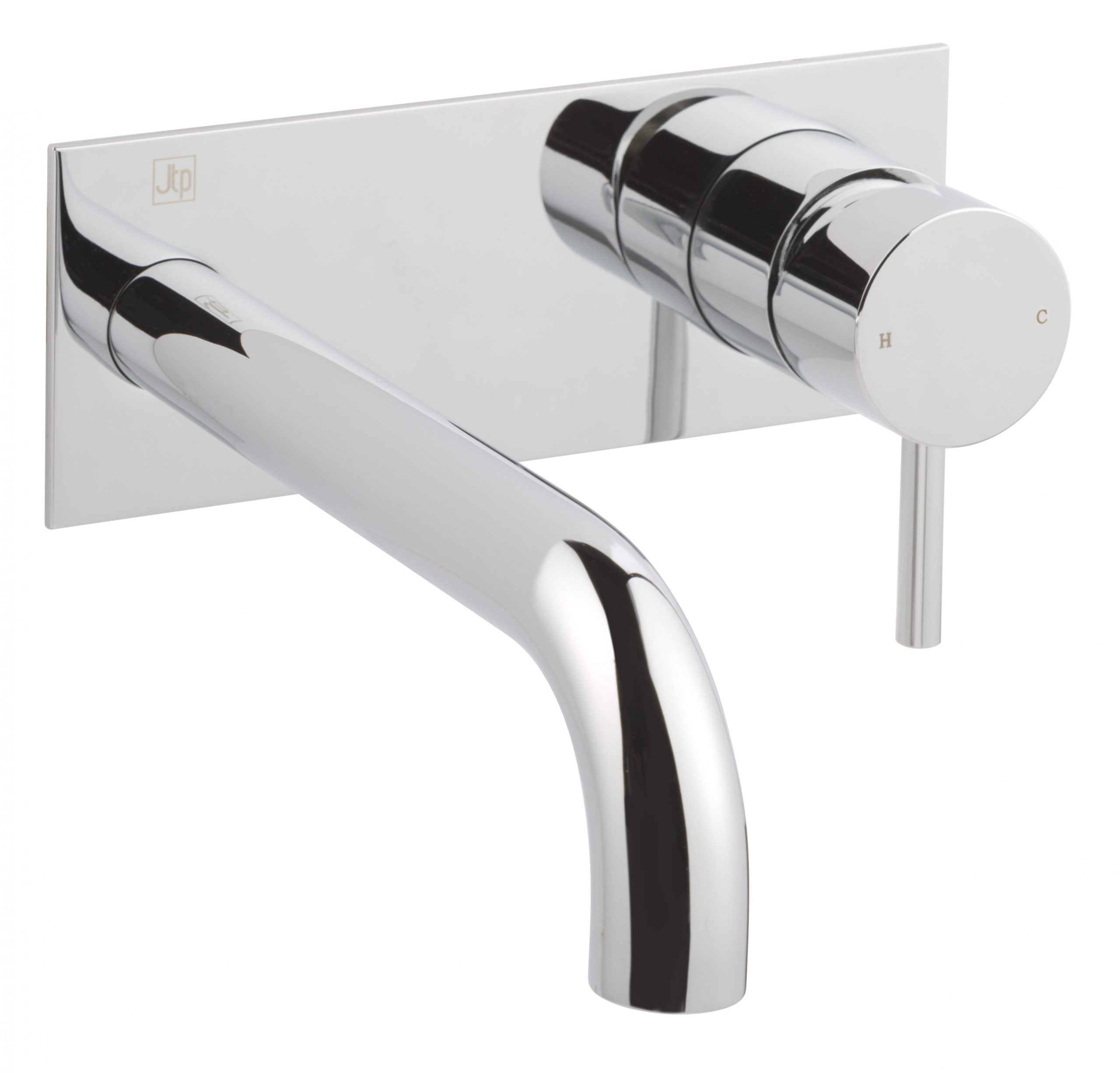 Returns Department, Bathrooms by FountainJTP Florence single lever wall mounted basin mixer with backplate, choice of 3 spout lengths. Chrome finish (brass body)