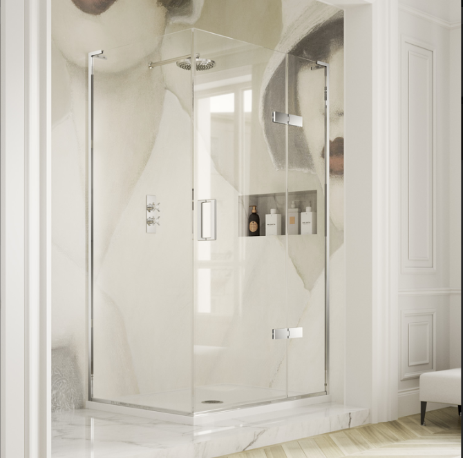Returns Department, Bathrooms by FountainMatki Eauzone Hinged Door with Hinge Panel for Corner- Silver/Chrome