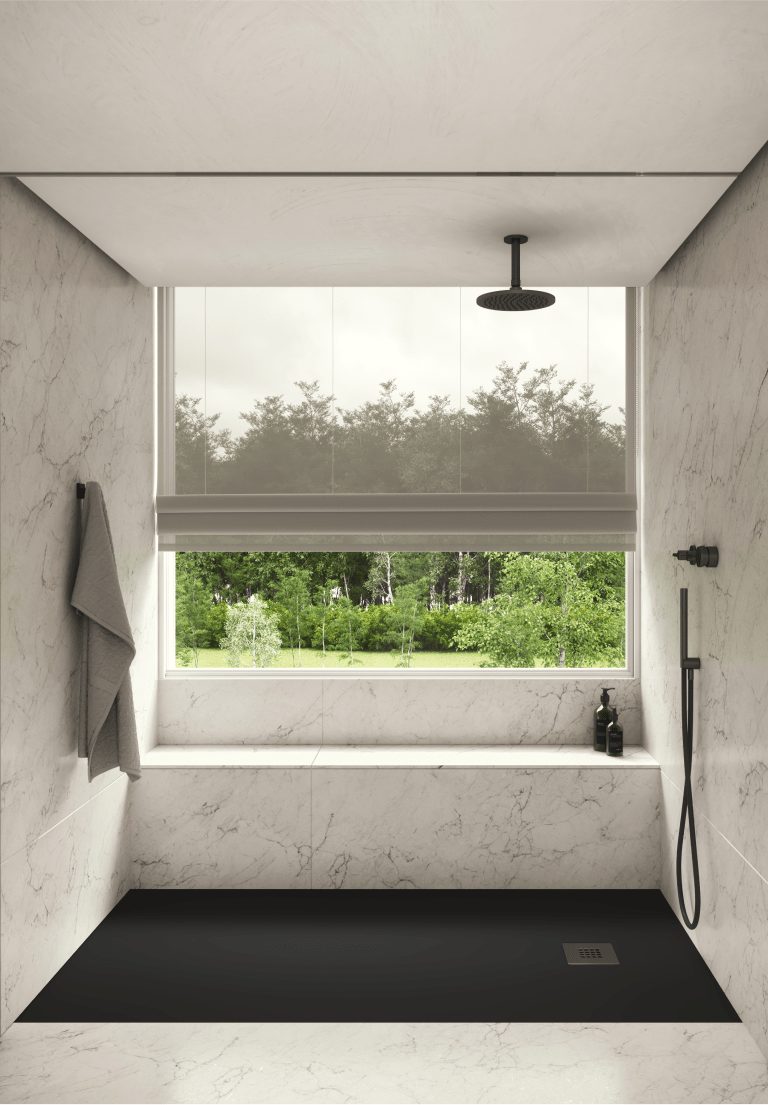Oh My Shower Slate aesthetic, warm to the touch mineral composite shower trays.