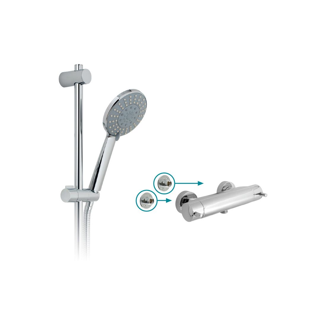 Exposed Celsius thermostatic valve, Evolve 4 function slide rail kit and easy-fit wall mounting brackets.