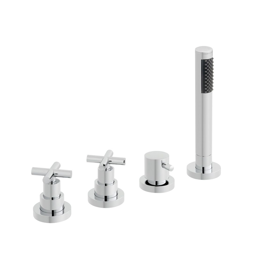 Returns Department, Bathrooms by FountainVado Elements 4 hole deck mounted bath shower mixer with cross handles, diverter and shower kit. For use with bath filler waste and overflow (No spout)