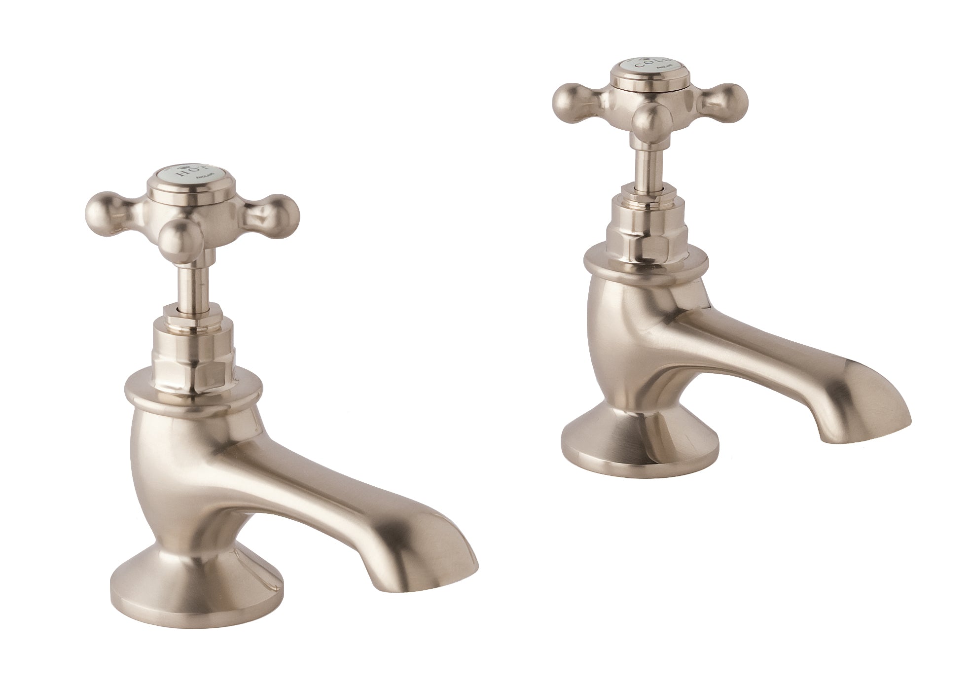 Returns Department, Bathrooms by FountainBC Designs Victrion Crosshead Bath Taps. Traditional style bath pillar taps available in a choice of finishes - Chrome, Copper, Nickel and Gold in brushed or polished.